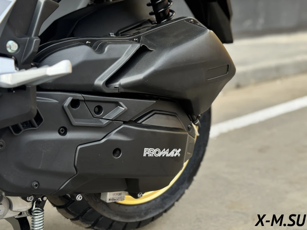 МаксиСкутер PROMAX ADV 250 оснащен одноцилиндровым четырехтактным инжекторным двигателем объемом 200 кубических сантиметров, мощностью до 22 л.с.