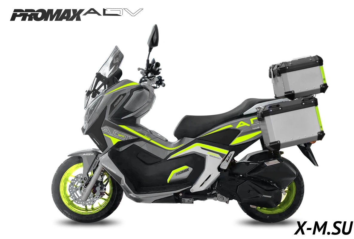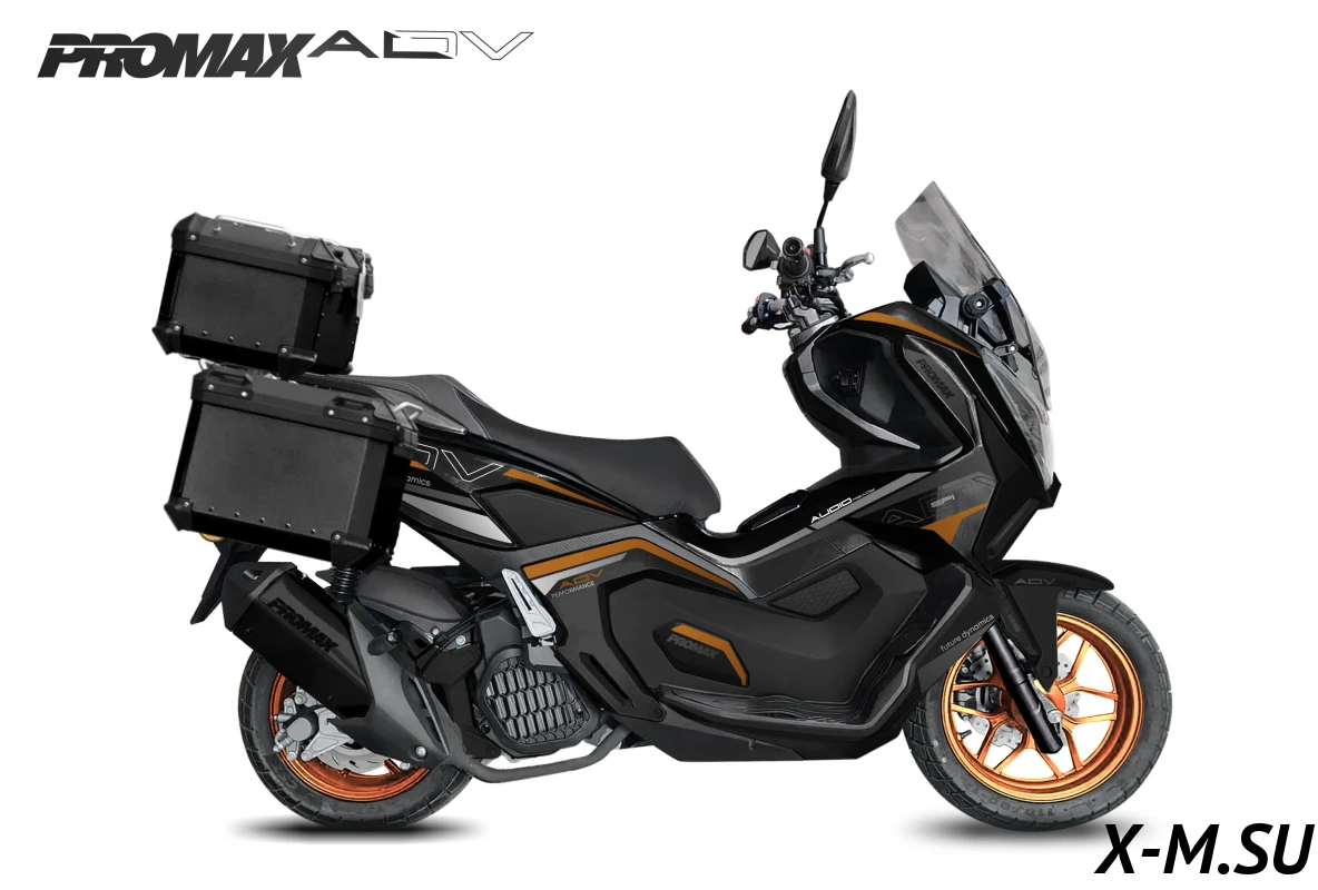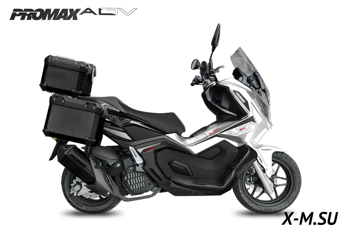 МаксиСкутер PROMAX ADV создан на базе модели кросс-скутера HONDA ADV. Компания PROMAX сотрудничает с HONDA и предлагает более доступный, но качественный аналог скутера HONDA ADV EFI.